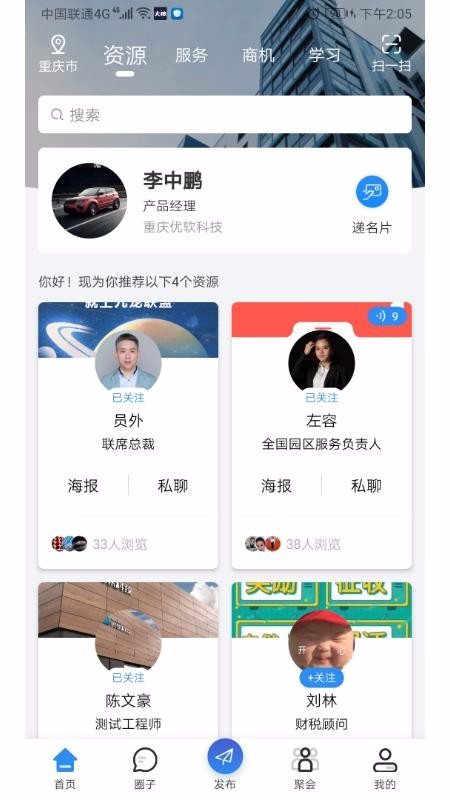 3、关注喜欢的人脉用户,在查看资源人脉页面的好友时能点击其关注功能关注;