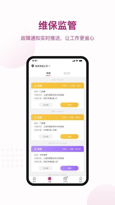 3、当前隐患,实时的显示了电梯的当前隐患,可自由的浏览;
