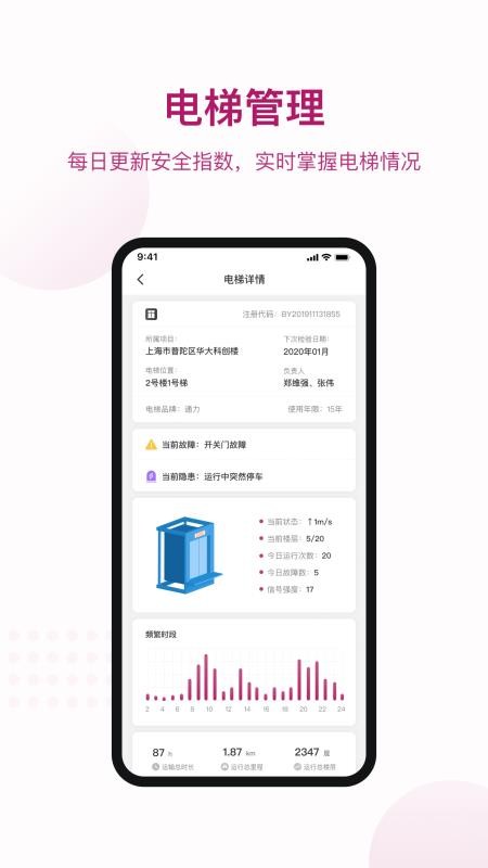 5、在电梯详情界面中,可查看到电梯的安全指数