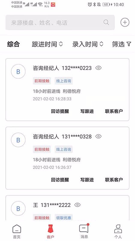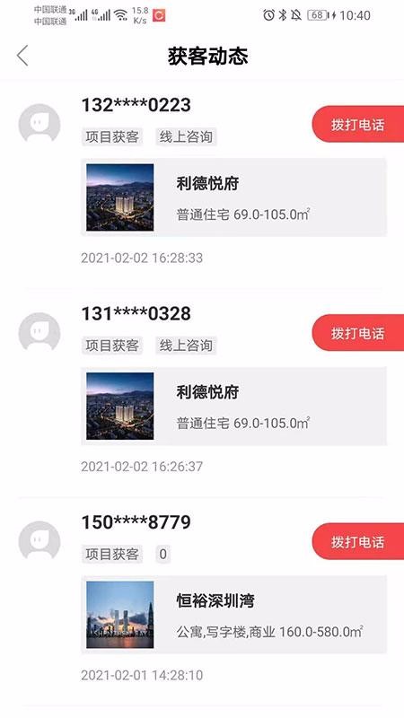 3、一目了然的获客动态列表,获客动态中以列表形式展示了相应的客户信息;