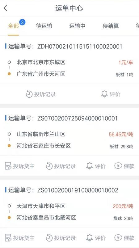 3、进入运单中心,查看各个运单的详细内容,了解运单评价和投诉情况