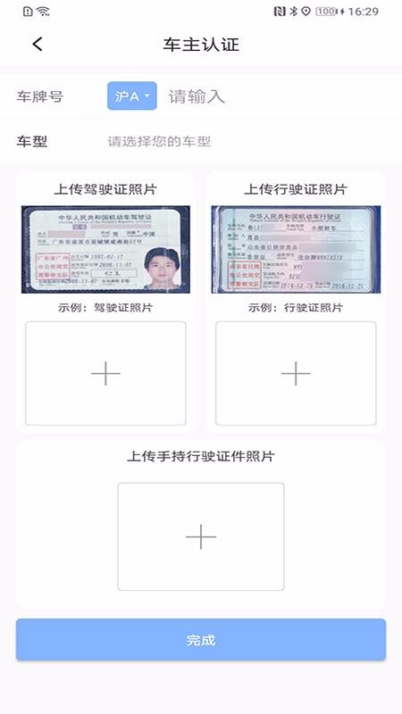 3、可以进行车主认证,输入车牌号和车型,并上传驾驶证完成认证;