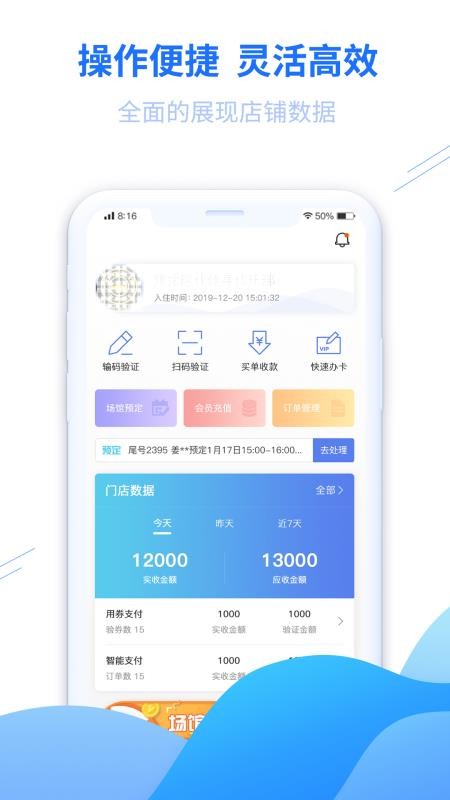 1、在应用的首页中,实时查看门店数据信息,了解不同的操作功能