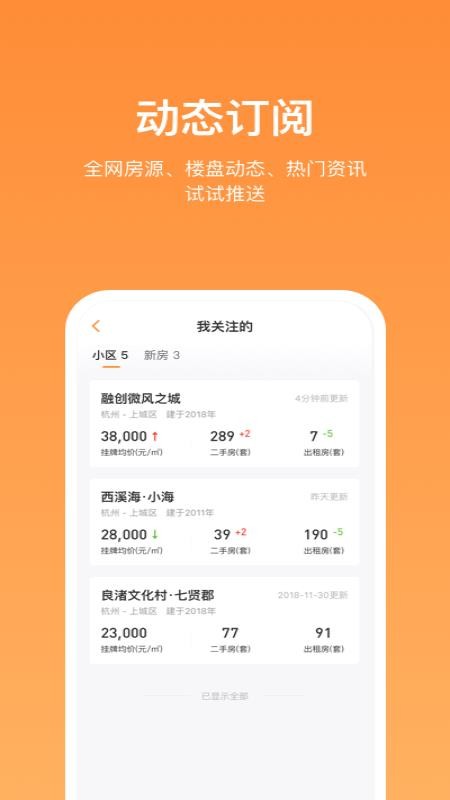 3、在这里,用户可以看到自己关注的各个楼盘信息,了解楼盘价格变化情况;