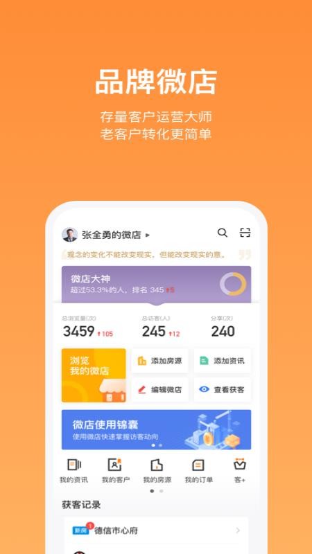 蚂蚁安家app是一款为各个一二手房经纪人提供服务的软件,让用户能够轻松运营自己的房源微店,更加高效的出售和出租房屋,拥有更多的客流量,留住更多老客户,从而能够提高自己的房产销量和每日收益;用户在软件中能够在线对自己的房源进行管理,了解各个房源的状态信息,从而及时的对房源进行营销推广,更轻松的将房源出售出去,提高自己的工作效率,让房源经纪工作变得更加方便快捷,提升用户的工作体验,帮助用户获取更多优质房源,为用户的工作带来更多便利,满足自己各个客户的房源需求,提高客户满意度。
