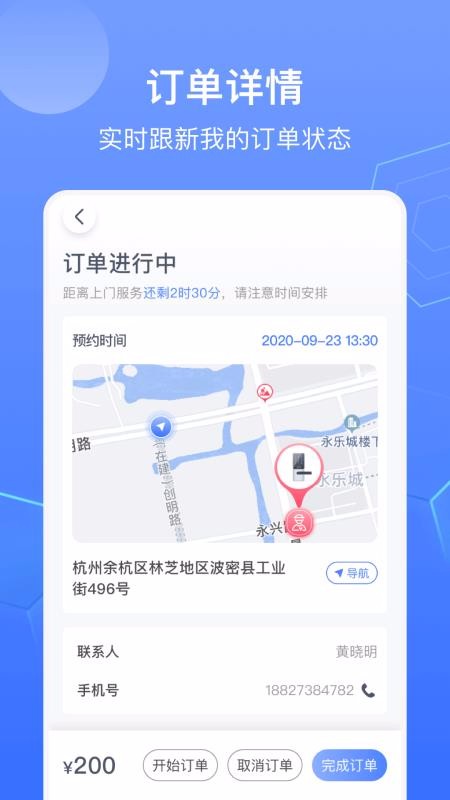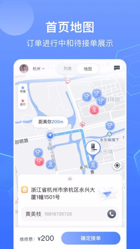 4、提供了导航功能,选择订单可以导航前往,快速到达服务地点;
