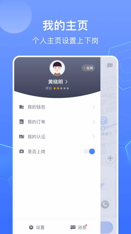 5、进入个人中心,自行选择订单、认证、是否上岗、消息等功能进行查看