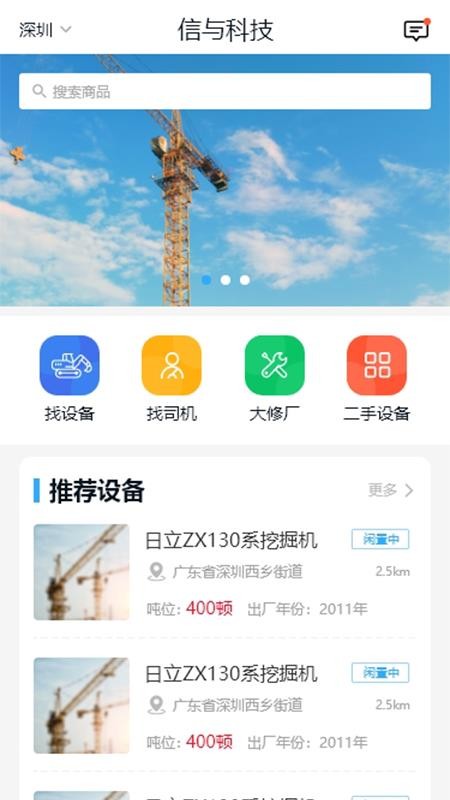 2、在首页中,用户可查看到推荐的各种优质的机械设备