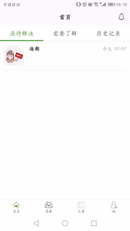 2、进入首页中,分类展示了待解决、需要了解或历史记录信息