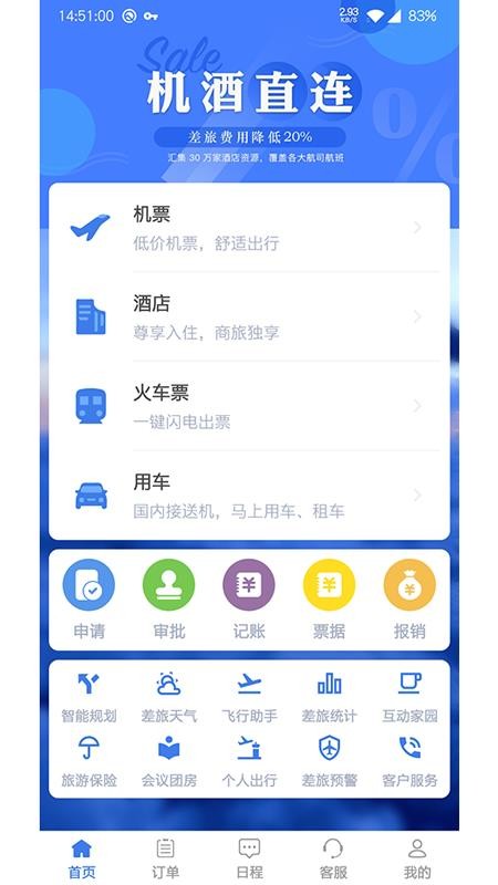 商旅众联app是一款为企业员工提供各种商旅服务的软件,让用户能够更轻松的购买各种出行票,享受更加优质的出行体验,为用户的出差带来更多的便利,帮助企业节省更多的差旅费用,降低企业的经营成本;用户通过软件能够找到多种类型的差旅服务,帮助用户规划自己的出差路线,从而能够用更短的时间和更少的费用来完成出差任务,提高自己的工作效率,并且能够拥有更全面的出行安全和品质保证,让用户能够更放心的出差,提升用户的工作体验;快下载这款软件试试吧,更加轻松的完成出差任务,降低差旅费用。
