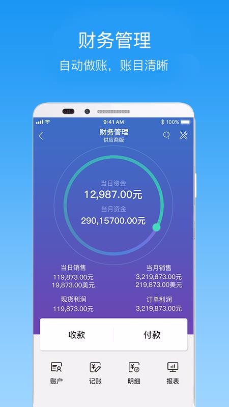 2、自动做账,清晰展示各账目,便捷实现财务管理,轻松对账;