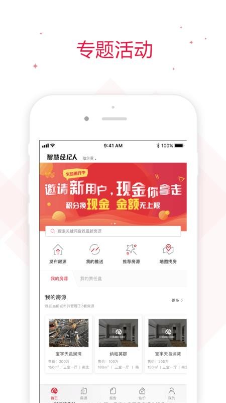 智慧经纪人app是一款为各个房产经纪人提供服务的软件,让用户能够轻松管理自己的房源,寻找更多优质房源信息;用户在软件中能够找到多种类型的个人房源信息,从而能够获取到更多的优质房源,快速对各个房源进行推广,提高自己的房源销售业绩,从而拥有更多的佣金收入,提升自己的工作效率和工作体验;在这里用户还可以清晰看到各种房产的估价信息,了解不同房源当前的价值详情,从而快速将房源分享给自己的客户,满足不同客户的购房需求,让自己能够更轻松的销售房源,拥有属于自己的房产经纪品牌。