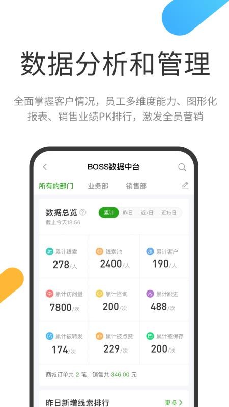 1、客户分析,对客户进行智能的分析,为用户科学的制定跟进策略;