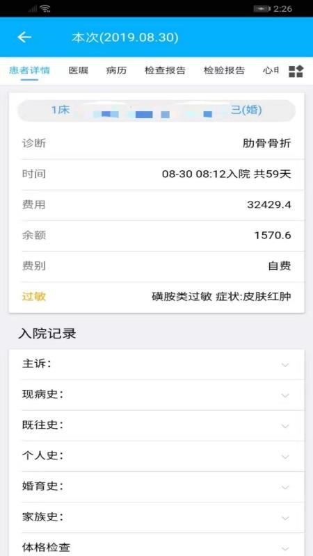 5、用户在软件中可以看到患者的详细就医信息,了解患者的入院记录;