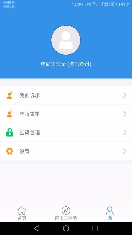 1、简单清晰的个人主页功能列表,这里为用户设置了我的诉求、年报表单以及密码管理功能;