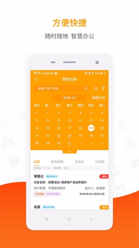 掌上4S员工端是一个手机端客户管理工具,也是专门为4S店员工准备的工作平台,让相关门店的工作人员可以一站式的管理销售、营销、预约、商城、报表等常见的工作,并且所有功能集中于一个app,让用户使用一个app就可以完成各类工作,更加方便和灵活;并且该工作涵盖了客户管理的全流程,从客户预约下单到售后服务,员工都可以使用该软件进行流程化的跟踪和管理,而且平台也会统计员工的工作数据,帮助员工便捷的了解管理情况、营销情况等,并且在线办公的同时,还可以实现协同办公,共同完成一个任务,更加便捷,轻松进行智慧办公。