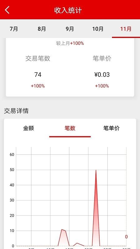 2、详细的交易笔图表,采用条形图来展示每个月收入笔数的信息;