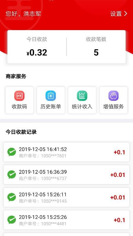 4、设置有历史账单、统计收入、增值服务等商家服务,便捷高效服务;