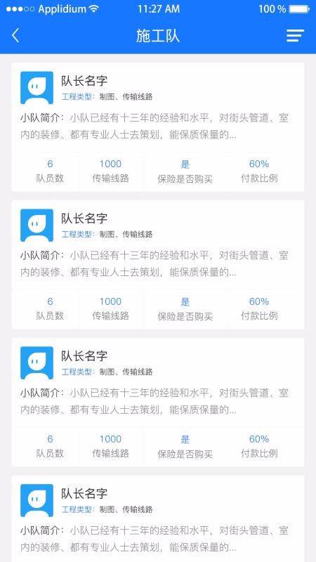 5、一目了然的施工队基础信息,所有施工队都展示了队员数、传输线路以及付款比例等数据;