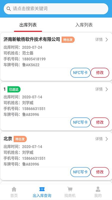 2、拥有历史记录模块,可快速的在其中寻找司机和企业;