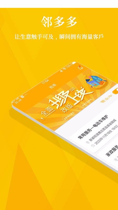 邻多多商家版是一个便捷的商家抢单服务平台,针对客户端整合了周边客户的下单信息,专门为商家设置了便捷的抢单中心;平台上设置了商家服务项目自定义页面,在这里能根据自己商店的实际经营范围设计相应的服务类型,有了这些服务类型资料后就能吸引更多的需求客户,充分向客户端的用户展示自己的服务项目,提高店铺经营收益,增加了商家的销售渠道;这里采用了抢单竞价营销模式,和传统的门店下单管理系统不同,这里的服务订单没有固定的服务商家,所有商家都能在平台上抢单竞价,从而为优质的商家带来更多订单收益,让订单自动合理分配。
