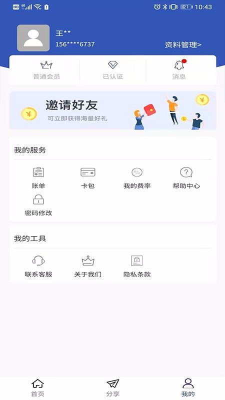 3、提供了专属的推荐码,可以邀请好友使用该软件,并通过海报、二维码等形式进行便捷的分享;