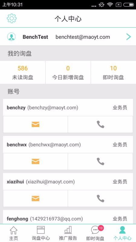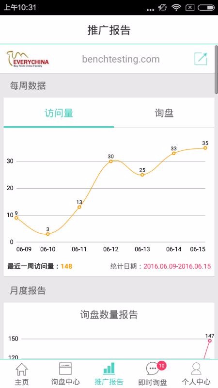 1、一目了然的个人中心数据统计,这里展示我的询盘中未读询盘、今日新增询盘和即时询盘数据;