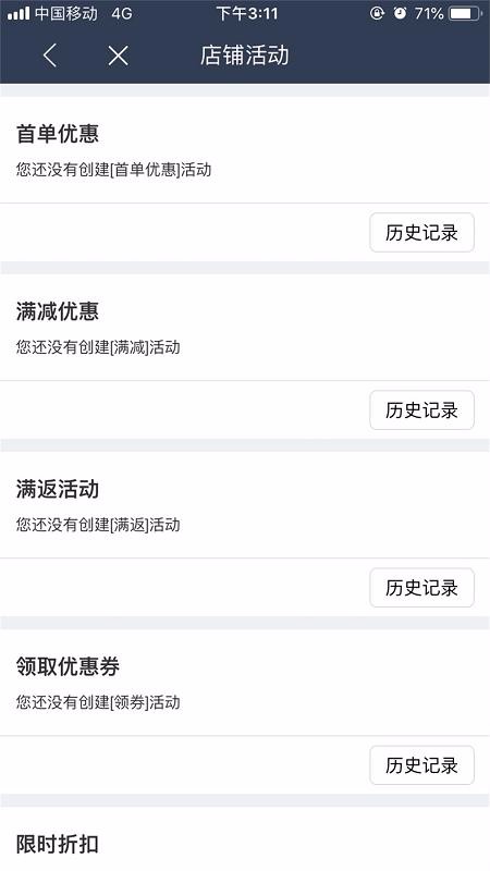 3、清晰的店铺活动记录页面,店铺活动页面展示了各种优惠获客活动记录信息;