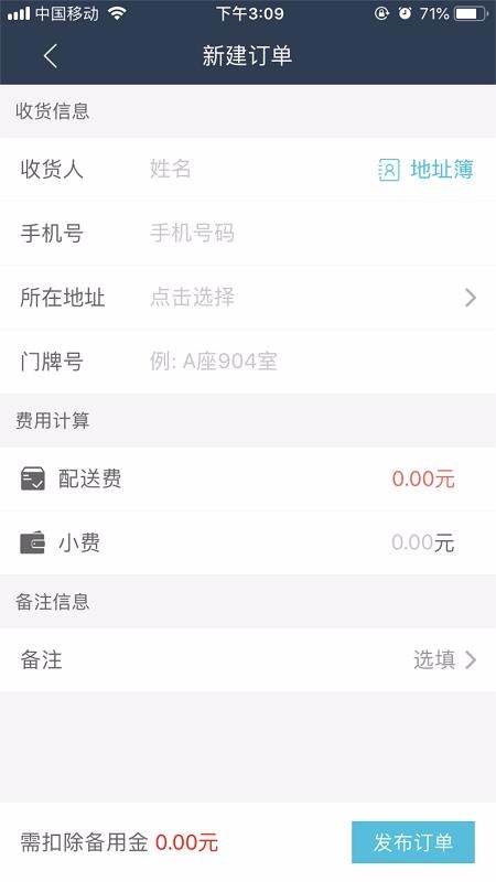 2、便捷的新建订单方式,该页面提供许多便捷的内容编辑栏,轻松编辑输入即可完成订单发布操作;