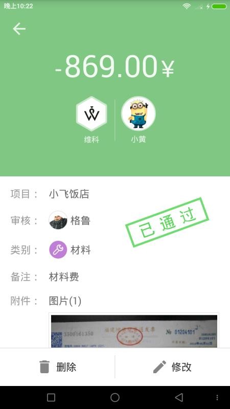 3、可以删除和修改记账的信息,随时进入了解不同内容记账的情况;