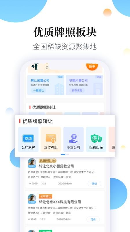 4、用户在软件中可以看到各种牌照转让信息,快速收购各种稀缺资源;