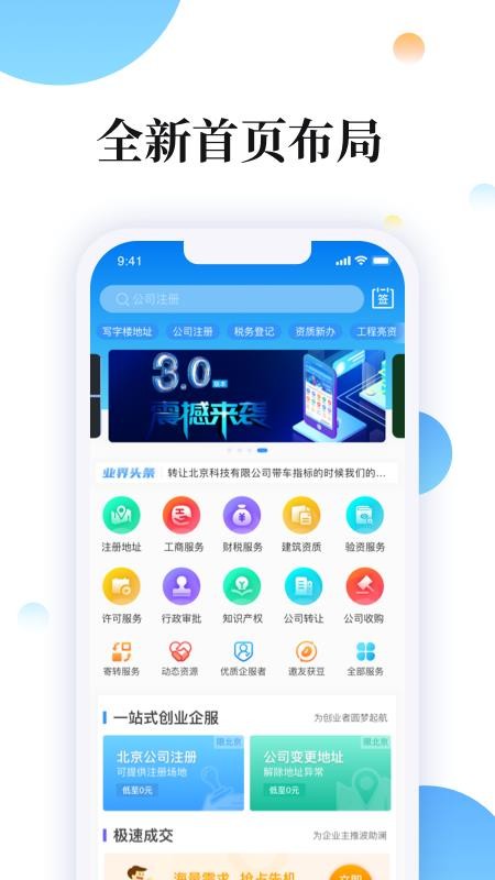 2、在首页中快速办理各种类型的业务,更加便捷的转让或收购公司,寻找更多动态资源