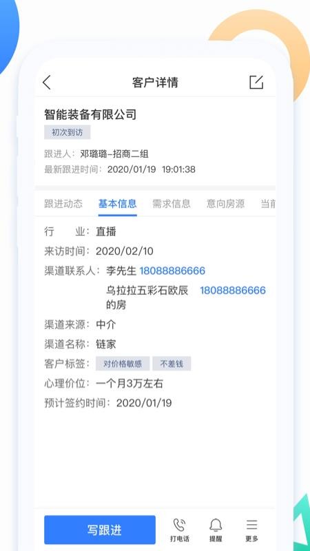 5、点击跟踪,在线实时编辑详细的客户信息,以便专属推荐房源