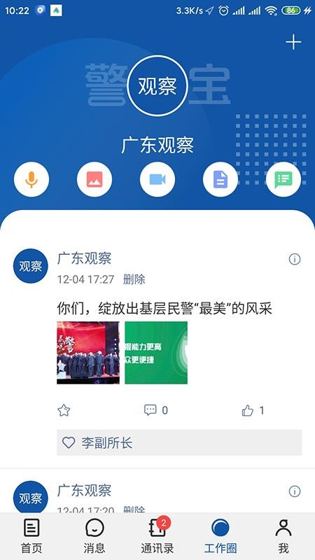 5、拥有工作圈版块,用户在这里能够看到各种动态信息,和其他民警在线互动;