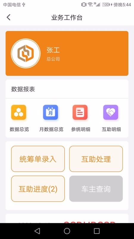 2、拥有丰富的业务工作功能标签,其中涵盖统筹单录入、互助处理和互助进度等功能标签;