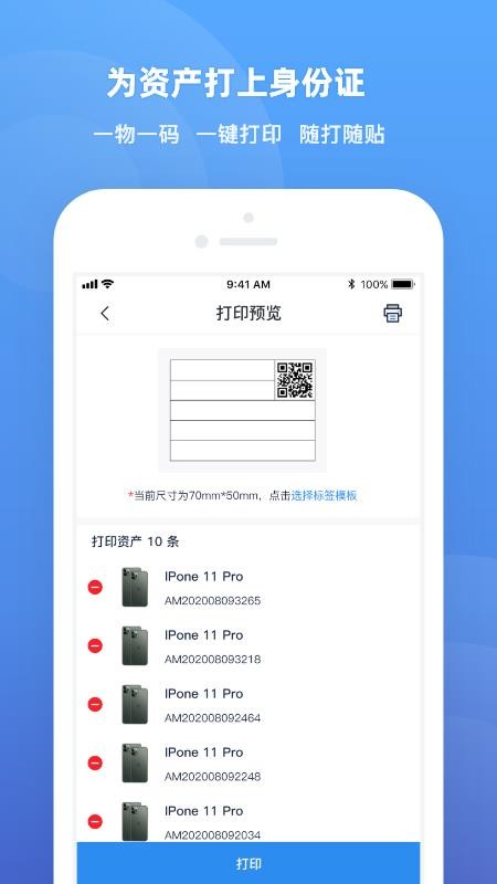 5、打开打印版块,选择自己要打印的资产,一键打印资产二维码