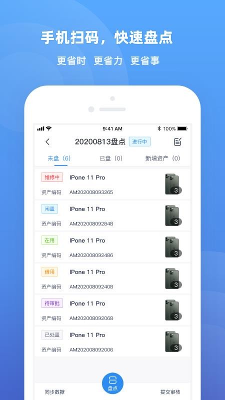 4、进入盘点版块,通过手机扫码更加便捷的完成资产盘点,提高盘点效率
