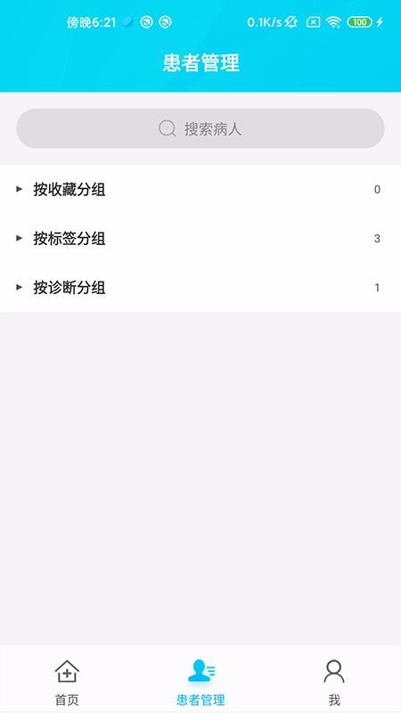 1、多种默认患者管理分组列表,这里有按收藏分组、按标签分组以及按诊断分组等内容;