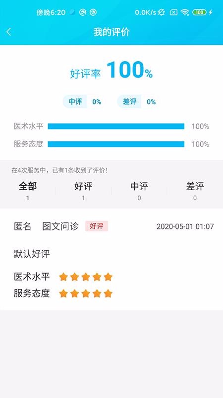 5、展示丰富的评价信息内容,其中有好评率、医术水平、服务态度等评价内容;