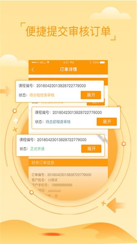 筑成CRM是一款专业为网课销售人员提供管理服务的软件,它可以让用户更加便捷的完成每日的工作,帮助用户迅速的提升销售效率,从而增加自身的收益;该应用实时的显示了客户资料,用户可在线查看,轻松就可以了解到有意向客户的个人信息,让用户可以采用电话拨打或者添加微信的方式,对客户进行跟进拜访,轻松就可以通过与客户的对话,知晓该客户的需求,为其推荐符合要求的教育网课,非常的具有实用性;同时,在与客户达成成交意向后,用户可在线提交审核订单,全程线上处理,不需要任何的纸质文件,让用户轻松即可完成一次销售工作,十分的方便。