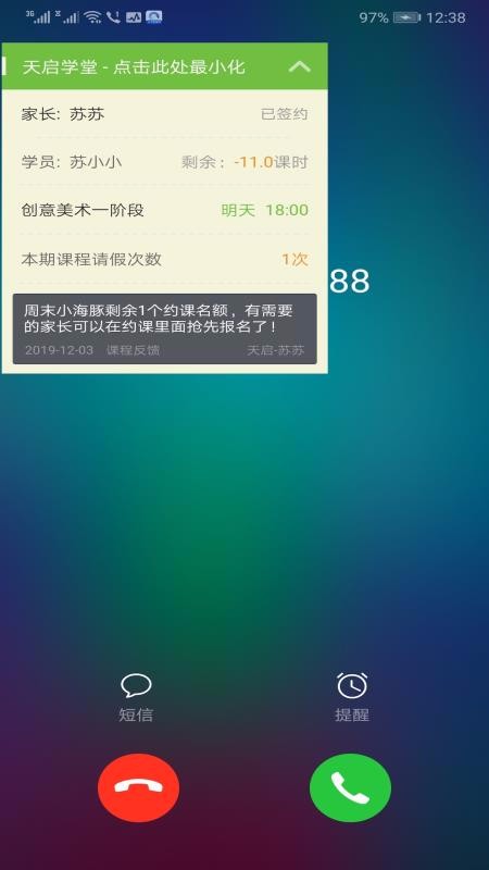 3、全自动管理各教务,系统自动发送上课提醒给学员家长,提高学员的出勤率;
