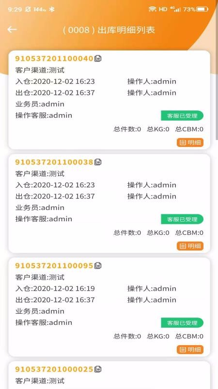 6、一目了然的出库明细列表,该信页面显示所有列表内容,每条内容状态和参数都清晰明了;
