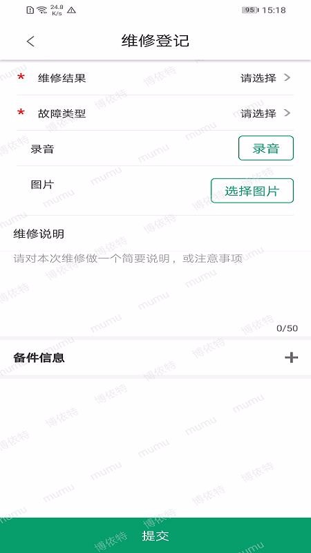 1、登记新的维修任务,支持进入到维修登记页面并根据需要登记维修任务内容;