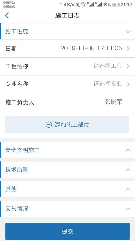 6、拥有施工日志版块,用户可以在这里快速提交最新的施工日志,记录施工进度;