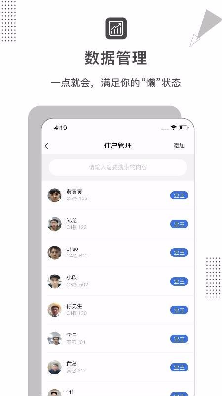2、住户信息资料管理,使用住户管理功能可以自由编辑管理住户资料;