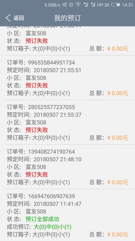 2、在这里,用户能够清晰看到各个快递柜的订单信息,了解订单详细内容;