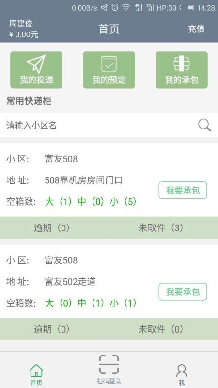 3、应用中有承包功能,用户可以一键承包自己感兴趣的各个快递柜,获得收益;