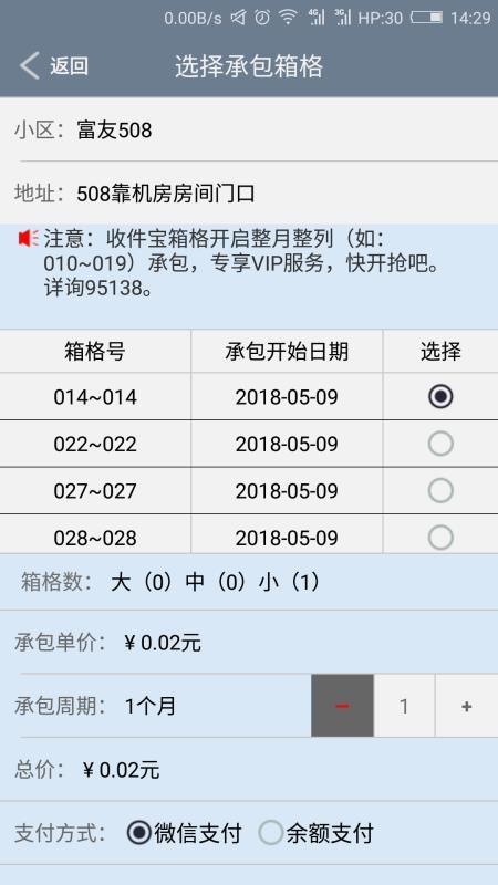 6、应用中有承包箱格选择功能,用户可以根据需求选择不同的箱格进行承包;