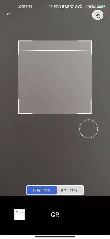 2、开启二维码识别闪光灯,点击扫描二维码功能中的闪光图标就能开启闪光灯;