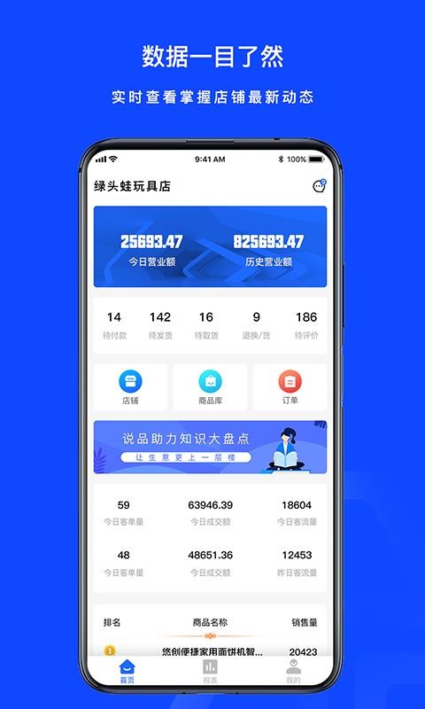 5、用户在软件中可以看到店铺今日的客单量、成交额和客流量信息,快速了解;